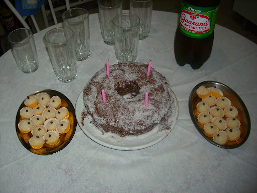 In Brasilien ist es aber unueblich das das Geburtstagskind den Kuchen mitbringt - hier muessen in der Regel die anderen ran.