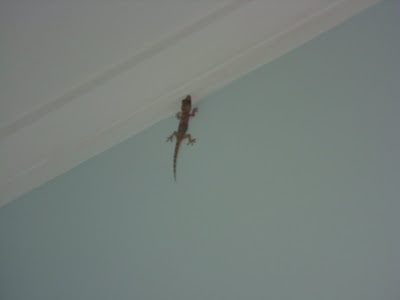 In meinem Zimmer hatte ich zudem noch einen ungewohnten Mitbewohner. Nachdem die Echse auch noch über den Boden rannte, wollte ich doch nicht mehr mit ihr in einem Raum schlafen. Giselas Vater war so lieb und fing sie. Dabei ging ein Stück ihres Schwanzes drauf (welches lustig weiter zuckte), aber mir wurde versichert, dass der wieder nach wächst.
